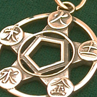 These are the Five Elements of Taoist philosophy, showing the five aspects of our natural existence, and the importance of a delicate balance. Also very useful in Chinese medicine, the elements are on the pendant in a clockwise order. It's called the "engendering" or "creation" cycle when you follow them in this order, one encouraging the other's qualities.
