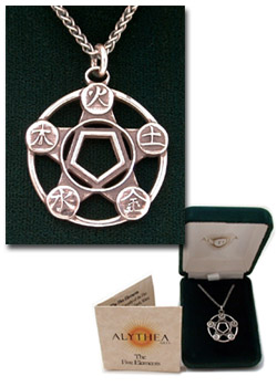 These are the Five Elements of Taoist philosophy, showing the five aspects of our natural existence, and the importance of a delicate balance. Also very useful in Chinese medicine, the elements are on the pendant in a clockwise order. It's called the "engendering" or "creation" cycle when you follow them in this order, one encouraging the other's qualities.